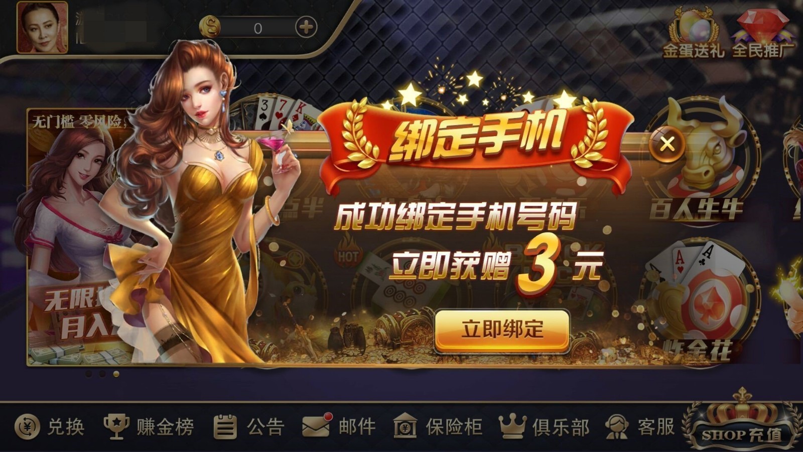 3、多样玩法,游戏中为玩家提供斗牛牛、麻将、斗地主等多种游戏玩法,玩家可随时自由切换体验不同为玩法对战的乐趣;