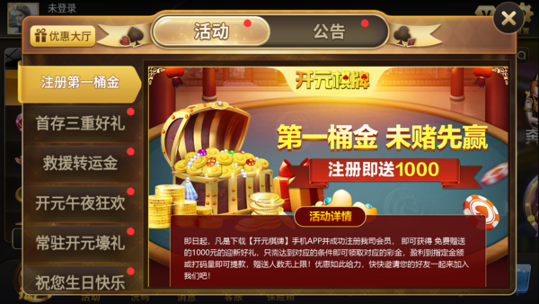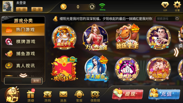 财神棋牌里一款非常流行的在线棋牌,切实有效地保护玩家隐私,火爆的游戏随时开启,保证了游戏的公平性,棋牌背景音乐经典悦耳,喜欢的玩家赶紧下载吧!