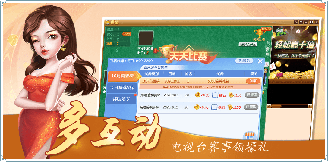 2、免费:每天登陆送豪礼,连续登陆送更多,诚意满满,积分不足自动发放,让您免费打牌