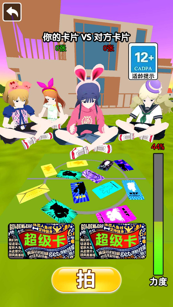 2、将卡片平放在地上,然后用选择的卡片拍打,尝试让地上的卡片翻过来。