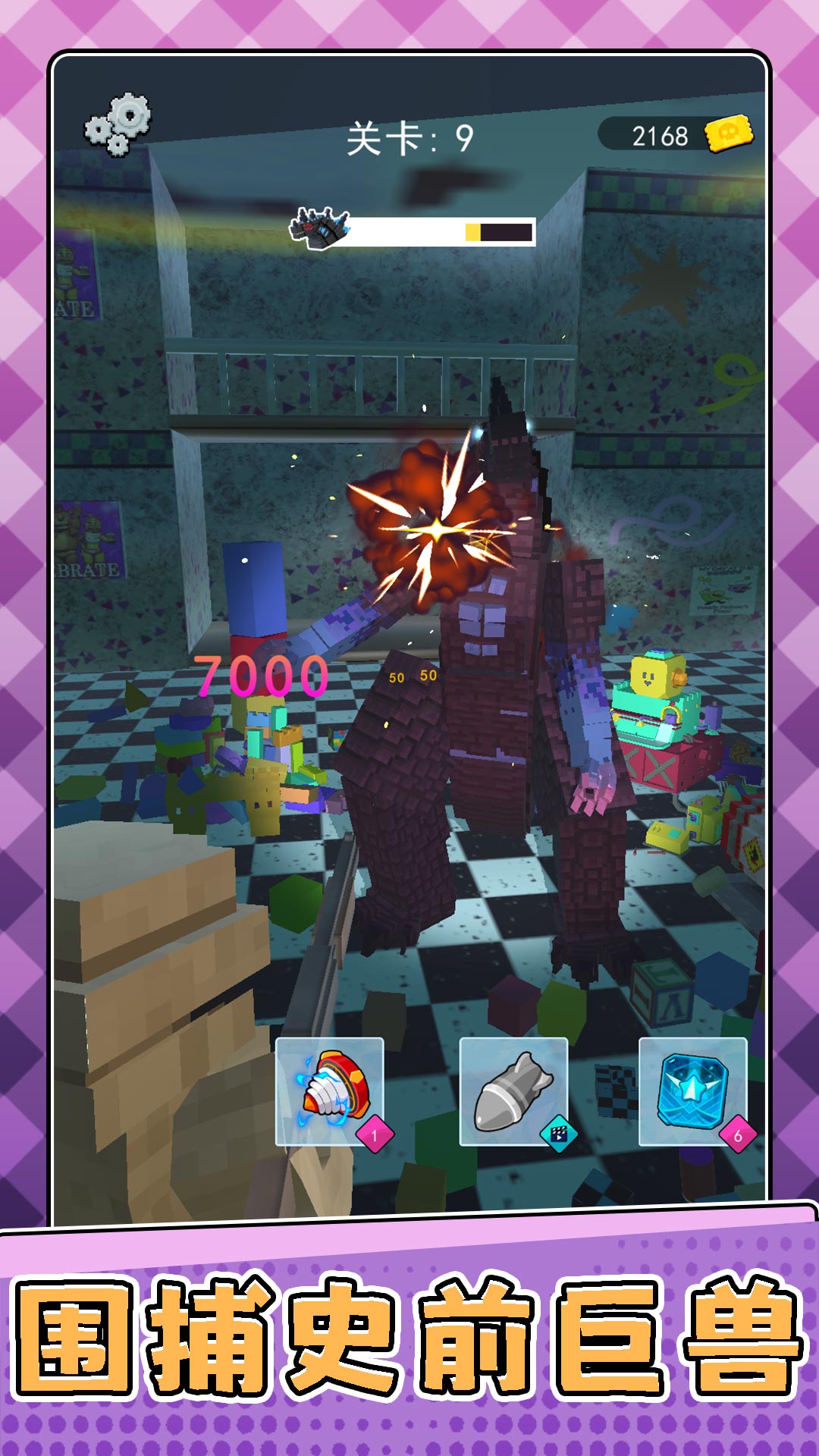 1、进入关卡中,我们需要使用武器,对各种的怪物不断是发起攻击。